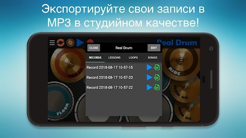 - Real Drum – настоящий симулятор игры на барабанах,