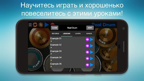 Благодаря этому всему приложение позволяет легко и быстро обучиться игре на барабанах, а также позволит пользователю войти в импровизацию и придумать собственную композицию. Для тренировок можно воспользоваться еще одной функцией и выбрать любую песню. Где барабанщиком будете вы. Установив это приложение, у вас всегда при себе будет карманная барабанная установка, которая позволит потренироваться, ударится в творчество или же научиться самой игре.