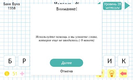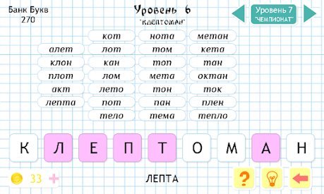 Здесь вас ожидает множество таких головоломок, в каждой из которых из одного слова вам предстоит, будет собрать огромное количество других. За каждое собранное слово вы будете получать определенное количество очков и монет. Последние вы можете потратить на использование разнообразных подсказок, которые помогут отыскать еще скрытые слова.