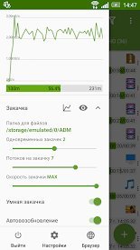 Все что вам здесь нужно это указать прямую ссылку на сайт и дать название файлу и все программа начнет скачку. В настройках вы можете установить количество потоков для закачки, лимит одновременных скачиваний, автоматическое закрытые после скачивания и многое другое. Она уже давно обросла огромной популярностью у владельцев смартфонов станьте и вы одним из ее фанатов, скачав ее на свое усройство.