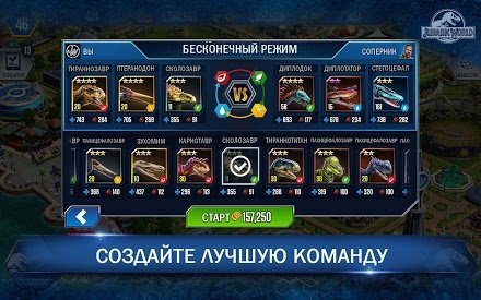 В игре вы можете заниматься строительством, возводить всевозможные сооружения необходимые для жизни динозавров и разуметься для комфорта зрителей. А так же широко реализованные возможности, в плане улучшения динозавров, вы можете создавать все новые виды, которые будут поражать зрителей своим разнообразием, согласитесь уже исключительно ради подобного, скачать Jurassic World: Игра на андроид, не только можно, но и нужно. Так же вы можете устраивать сражения между своими динозаврами, когда огромные монстры сражаются на арене. Сражения здесь могут проходить среди игроков со всего мира. По мере прохождения вы будете регулярно получать бонусы, часть из них, к примеру, будет в виде денег, которые затем уже можно потратить на все необходимое. В то время как другая часть бонусов, может идти в виде ДНК, которое пригодиться вам для создания новых динозавров. Перед тем как выпускать своего динозавра сражаться против других бойцов, как более тщательно подготовьте его, в игре были неплохо реализованы тренировки, так что вы сможете сделать из своего динозавра, настоящего опасного бойца.