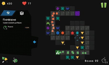 Это отличная игра в стиле ТД, в которой у вас не будет лучников, мечников, деревьев, а просто квадратики кружочки и ромбики. Противники ваши будут выглядеть точно также. Основная задача осталась прежней уничтожать всех врагов до того момента, как они доберутся до замка. Башни здесь можно улучшать в разнообразных параметрах. Кроме того некоторые ячейки предназначенные для создания башен также дают им дополнительные баффы и улучшения.