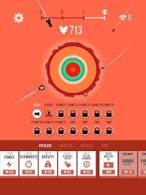 В этой игре вам предстоит примерить на себя роль разрушителя различных планет и устраивать на них массовую бомбежку. Главной задачей в игре является добраться до ядра планеты и уничтожить его. Эта игра чем то сродни кликеру, где нужно зарабатывать монеты и скорость заработка зависит от тапов по экрану. Схема здесь похожая только вам ненужно постоянно выполнять тапы. Мелкие ракеты сами будут утюжить поверхность и зарабатывать тем самым вам монеты, вам же только нужно постоянно покупать улучшения и бустеры, которые помогут укорить процесс уничтожения планетарного ядра.