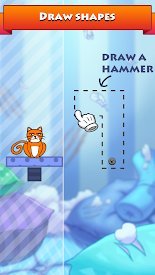 В этой игре вам предстоит пройти огромное количество уровней головоломок, суть которых состоит в спасении кота или же выталкивании его за границы экрана. Для этих целей вы практически в любом месте сможете нарисовать произвольную фигуру или активировать определенный предмет, который поможет выполнить эту задачу. В каждом уровне у вас есть некоторые условия для получения каждой из трех звезд. Чтобы пройти уровень на одну звезду нужно просто выполнить задание. Вторая и третья звезда дадутся за выполнение определенных условий, например, вложиться во временные рамки и/или использовать определенное количество нарисованных фигур. В общем, чем быстрее и качественнее вы пройдете уровень, тем больше звезд будет заработано. Также по мере прохождения вы будете получать коробки, в которых могут находиться части других скинов кота.
