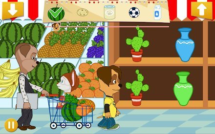 На старте игры ребенок сможет пройти обучение, которое объяснить им что же здесь нужно делать, нужно признать что для ребенка она точно станет полезной. В игре вас ждет действительно большой и реалистично проработанный супермаркет, в котором действительно много товаров. Среди которых нужно найти необходимый. В супермаркете есть как еда, так и бытовая химия, среди всего этого, вы должны будете найти необходимые именно вам товары. Играть вы будете за детей, которые под присмотром отца отправились за покупками, вот только присутствие отца. Не придает игре простоты, наоборот он регулярно старается подбросить в корзину с покупками, что-то чего нет в списке. Вы должны регулярно пресекать такие покупки и возвращать все незапланированное обратно на полки. Ведь вам была выдана ограниченная сумма денег, и если вы в нее не вложитесь, то автоматически проиграете. Кроме того, вы должны будете, опираясь на уже имеющийся список, набрать товаров так, чтоб денег точно хватило. К примеру, если будет несколько товаров с разной ценой, старайтесь брать то, что дешевле, таким образом, создатели игры стараются приучить детей экономить. Согласитесь ради всего вышесказанного скачать Детские игры Барбоскины на андроид, уже стоит. После того как все необходимые товары будут найдены, вам придется дотащить тележку с покупками до кассы. Где вы должны расплатиться, и уже после этого отвезите все маме, после чего игра считается пройденной.
