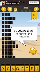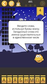 Угадай слова – это отличный вариант для тех людей, которые не знают чем занять себя в свободное время и при этом любят разгадывать разнообразные головоломки. Здесь вам предстоит пройти огромное количество уровней, в каждом из которых вы должны будете угадать по 10 слов. Перед вами будет просто десять строк из прямоугольников, количество которых указывает на число букв в слове. Внизу будет расположен ряд букв, из которых вам и нужно составить эти слова. Если вы никак не можете понять, какое именно слово зашифровано, то можете воспользоваться подсказкой от зубастого колобка. Подсказки здесь тоже необычные и больше похожи на вопросы из сканворда, но они точно помогут отгадать закрытое слово.
