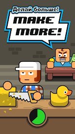 В этой игре потребуется руководить рабочими, которые занимаются изготовлением различных товаров. В начале игры Mak More! в распоряжении окажется только один рабочий, вырезающий разные предметы. Делает он это автоматически, но с небольшой скоростью. Она может увеличиться, если несколько раз коснуться дисплея.