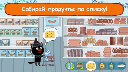 Каждому ребёнку известны эти милые котики из популярного мультфильма, который каждый раз показывают на телеканале СТС. Теперь у тебя появится уникальная возможность принять участие с главными героями, участвуя в большом количестве различных заданий и испытаний. С помощью этой достаточной интересной и полезной игре каждый ребёнок сможет научиться полезным знаниям, которые будут ему кстати в ближайшем будущем. Предоставь своему малышу отличную возможность для общения с милыми котиками, которые будут делать постоянные покупки, следите вместе с ребёнком за деньгами, и тогда всё будет происходить в лучшем виде. Ты можешь быть полностью уверен в том, что маленький геймер не сможет оторваться от этой игры, ведь она ему действительно очень сильно понравится. Про этих котиков уже создано большое количество игр, а именно теперь мы должны посетить в магазин для совершения покупок, список которых дала своим деткам мама-кошка. Тебе придётся выбрать действительно большое количество категорий товаров, и после этого привезти их домой. Работай с максимальной ответственностью, ведь от конечного результата будут зависеть очки опыта. Ты сможешь играть вместе со своими родителями, или друзьями, проходя множество интереснейших игровых заданий. Ребёнок сможет постоянно развиваться, играя с этими котиками милашками.