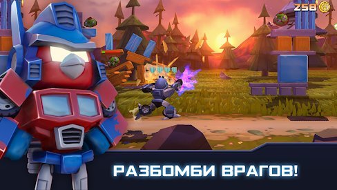 Angry Birds Transformers является чем-то с ровни ранеру и не имеет ничего общего с привычной миллионам игроков аркадой. В этой игре наконец-то прекращается извечная вражда птиц и свиней, которые объединяться для уничтожения общего врага яйцеботов. Они появились из-за падения неизвестной космической звезды в виде яйца, энергия которой превратила всех в роботов, а яйца в яйцеботов. Которые решили уничтожить все живое на этой планете. В этой игре ваш персонаж будет самостоятельно перемещаться по платформе, вам лишь остается стрелять по разнообразным постройкам из оружия и уничтожать их, зарабатывая при этом монеты. Они потребуются для открытия новых локаций, а также покупку или улучшение открытых персонажей. Это необычная разработка от Rovio точно будет по вкусу многим игрокам.