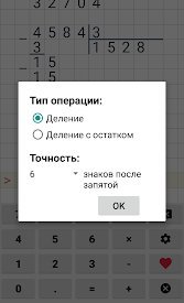 Калькулятор в столбик – это простая и удобная в использовании утилита, которая позволит произвести простые арифметические вычисления любой сложности в самые короткие сроки. Весь процесс вычисления происходит в столбик, поэтому пользователь сможет наглядно увидеть, откуда взялась та или иная цифра в вычислениях. Здесь вы можете прибавлять, отнимать, умножать и делить между собой любые числа. Приложение поддерживает как простые, так и десятичные дроби и также легко переводит одни в другие. Так что оно является просто незаменимым для школьников и станет отличным дополнением к привычному калькулятору. Поэтому обязательно установите его на свой мобильный или планшет.