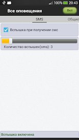 Представленная утилита предоставляет владельцу гаджета возможность ставить вспышку устройства на режим оповещения при входящих сообщениях и вызовах.