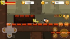 Предлагаем тебе окунуться в удивительные приключения, которые будут происходить с главным героем этой игры - Губкой Спанч Бобом, которому теперь предстоит выполнять большое количество интересных и удивительных заданий. После загрузки данной игрушки на свой девайс ты наконец-то сможешь сделать то, о чём так давно мечтал. Естественно, Губка Боб будет только дарить положительные эмоции, да и квадратные штаны у него выглядят достаточно смешно. Тебе необходимо оказать губке большую помощь, ведь на его длительном пути будут встречаться различные сложности и опасности, которые необходимо обязательно пройти. На протяжении игрового процесса ты сможешь заниматься исследованием удивительной игровой вселенной, в которой тебя будут ожидать различные удивительные детали и моменты. Подводный герой получит настоящую пушку, стреляя из которой будут вылетать желтые цветки. Подобное оружие является достаточно слабым, и с помощью его мощности будет очень сложно разобраться со всеми противниками. В любом случае, ты постоянно имеешь доступ к молотку, с помощью которого сможешь уничтожить любого врага на своём пути. Противников в игровом процессе будет предостаточно, и все они будут делать всё возможное, чтобы помешать тебе пройти до финала. Игровое управление здесь достаточно легкое, и его обучение не составит особых трудностей. Получай наслаждение от качественной аркады, которая поможет тебе немного расслабиться и забыть о всех проблемах.