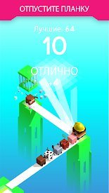 PLANK – это интересная аркада, в которой вам предстоит перемещать главного героя между платформами, которые расположены на разном расстоянии друг от друга. Для того, чтобы добраться до следующей платформы вам нужно создавать между ними мосты. Мост строится путем зажатия пальца на экране. Чем дольше вы будете держать палец, тем больше будет мост. На каждой платформе есть разметка, которая указывает идеальное расположение другого края моста. Чем четче вы будете попадать на эти отметки, тем больше очков получите в итоге. Также время от времени на платформах будут попадаться клетки с животными, которых вы будете спасать. Игра закончится в том случае, если вы доберетесь до финиша или же построите мост, длинны которого будет не достаточно, чтобы оказаться на другой стороне.