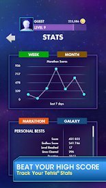 TETRIS от Electronic Arts Inc это нечто большее, чем популярная с детства аркада. Здесь присутствует несколько игровых режимов, которые предоставляют игроку совершенно разные способы геймплея. Решим в одно касание самый простой из предложенных. Здесь вам уже будут показаны самые лучшие варианты установки фигуры на поле, и вы просто должны выбрать лучший для вас вариант тапнув по нему пальцем. Второй режим марафон является классическим привычным каждому с детства тетрисом. Третий способ игры галактика предлагает очистить все игровое поле, делая при этом как можно меньше переворотов фигур. В общем это очень веселая андроид игра, которая предлагает вам поиграть в привычную игру с несколькими режимами, удобной графикой и простым управлением.