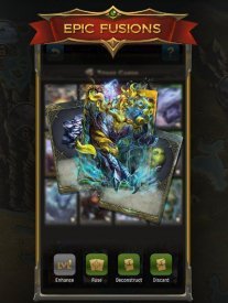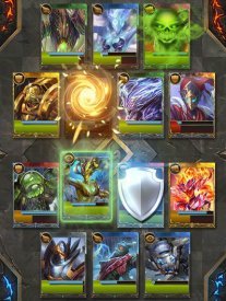Titans – отличная и довольно простая игра в жанре коллекционных карточных игр, которая предлагает вам огромное количество сражений. В этой игре вы являетесь молодым алхимиком, который из подручных средств способен создавать мощных существ, которых называют титаны. Игра состоит из множества уровней, на каждом из которых вам нужно три раза добраться до ворот, открывая перед этим три карты в трех рядах. Вы сами решаете, какие карты выбрать и после этого они все открываются. Игра сильно зависит от рандома и некоторые уровни можно пройти вообще без сражений. Дело в том, что в открытых картах помимо врагов также скрывается и немало ресурсов. Сам же бой предельно прост выбираете, какой картой атаковать и кого атаковать, кто выжил тот и победил.