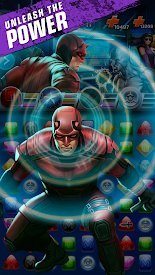 Marvel Puzzle Quest – это очень интересная аркадная головоломка с элементами РПГ. Здесь вам предстоит с головой окунуться в сюжет истории Марвела Темное правление и наказывать врагов во всех направлениях. Игра наделена интересным сюжетом и множеством персонажей, которых можно прокачивать и увеличивать их уровень. На этом элемент РПГ заканчивается и перед игроком появляется обычная аркада в стиле «3 в ряд». Именно так и происходят все сражения в игре. Вам нужно собирать ряды из камушков и таким образом наносить урон врагу. Собрав нужное количество камней определенного цвета, вы сможете активировать способность одного из персонажей и нанести значительно больший урон.