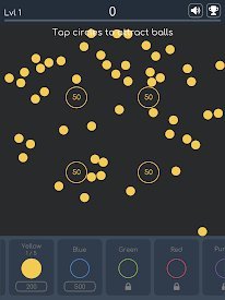 Balls Control – это не что иное, как аркада антистресс. Здесь нет сюжета или хоть маломальски сложного геймплея. Все что вам нужно здесь делать, это нажимать на круги с цифрами и к ним устремятся все шары на экране такого же цвета. На каждом из кругов указано конкретное число, это количество шаров, которые должны влететь в него, чтобы он пропал. Таким образом, убирая эти разноцветные круги, и проходятся уровни. Игра усложняется лишь тем, что числа в кругах постоянно увеличиваются числа и соответственно пропадать они будут дольше. Поэтому она отлично подойдет в том случае, когда нужно разрядиться после рабочего дня и снять нервное напряжение. Что-что, а успокаивать она точно умеет.