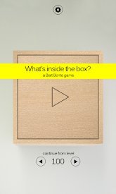 What's inside the box? – игра с заслуженным жанром «Головоломка», ставящая на первый взгляд простую цель – добраться до средины ящика. Однако в ней действительно нужно думать, а действовать по наитию или и вовсе наугад, ведь коробка спрятана в сотнях запутанных загадок. Только логика, внимательность, стремление к развитию памяти и умственных способностей могут помочь в решении сложных и порой веселых задач. Также ей компонует слово «тайм-киллер», проводя раунды на локациях, время течет не заметно для вас, но с заметной пользой для ваших мозговых извилин. К тому же, она имеет простой интерфейс, минимальные требования к аппаратной части телефона и необъяснимый магнетизм, притягивающий проходить все новые и более сложные уровни.