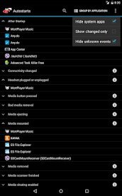 Autostarts – программа для самостоятельного редактирования реестра автоматически включающихся при старте системы приложений или обновляющих работоспособность при ручной остановке различными триггерами, которые в дальнейшем невидимо работают в фоновом режиме. Она позволяет останавливать системные службы/функции/компоненты, которые не несут никакой пользы, а только занимают оперативную память и быстрее разряжают аккумулятор. Для начала работы с программой нужно выполнить «Отладку по USB», открыв «Настройки» и пункт «О телефоне». А чтобы начать настройку работы фоновых приложений понадобиться рутировать устройство, установив соответствующую утилиту.