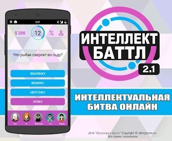 Интеллект-баттл является отличной головоломкой. Она выполнена несколько в стиле популярного шоу «Кто хочет стать миллионером?». Здесь вам будут задавать вопросы и 4 варианта ответов. Ответив правильно, вы будете зарабатывать определенное количество денег, неправильный же ответ либо окончит игру, если он единственный в раунде. Если же неправильно вместе с вами ответили еще несколько игроков, то вам будет дан еще один шанс. Да кстати играть вы будете с еще 4 реальными игроками, и только одни из вас заберет выигранные деньги. Также в игре есть режим турнира, попасть в который можно только внеся определенное количество внутриигровой валюты, а также сражения между самыми сильными игроками. На игру вам предоставляется две подсказки: 50 на 50 и возможность отследить ответы своих оппонентов в игре.