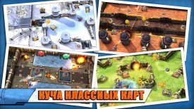 Битвы танков представляет собой великолепную танковую аркаду от Gameloft. Здесь вам предстоит создать свой собственный танк, постоянно улучшать его, цеплять различное вооружение, гусеницы, броню и так далее, чтобы сделать его более мощным и крепким. Магазин здесь очень разнообразен и предоставляет возможность собрать около 90 000 различных комбинаций строения танков. Графика выполнена в мультяшном стиле и прорисована очень качественно. Управление также очень простое и состоит из обычного сенсорного джойстика, который отвечает за движение. Выстрелы происходят с помощью тапа по экрану в нужном направлении. Игра наделена как сюжетным режимом, так и несколькими вариантами мультиплеера. Также здесь есть множество заданий, выполняя которые игрок будет получать различные награды.