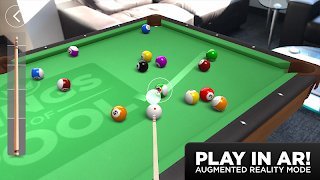 Сыграйте в этот великолепный бильярд на больших реалистичных столах вместе со своими друзьями, которых здесь немалое разнообразие. Возьмите в руку кий и сильно ударяйте им по треугольнику, состоящему из бильярдных шаров, пытаясь загнать их в лузы и получайте за выигрышные комбинации приемлемые призы. Выберите верную траекторию и определите силу удара кием, после чего забивайте один за другим шары. Покажите собственный профессионализм и одерживайте победоносный успех в разнообразных турнирах. Выполняйте сногсшибательные хитроумные финты и сложнейшие трюки, не давая оппоненту шанса на выигрыш. Попытайтесь не промахиваться, а точно попадать в цель, зарабатывайте бонусные очки, закупайтесь уникальными киями и новыми столами. Пристально наблюдайте за собственным прогрессом в турнирной таблице и бросайте перчатку профессиональным геймерам со всей планеты. Переписывайтесь с товарищами и иными игроманами во всеобщем игровом чате. Не прекращайте играть в эту затягивающую игрушку и восторгайтесь превосходной физикой и весьма простеньким комфортабельным управлением. Пользователей ожидает фантастическая реалистичная атмосфера, при которой возможно ежедневно играть в бильярд. Игроков в обязательном порядке порадует живая феерическая атмосфера. Юзерам предоставится на выбор огромное количество бесподобных бильярдных столов, которые немного разнообразят вашу игру. В приложении была применена качественная реалистичная физика передвижений и отличная механика перекатывания шаров, к тому же ударов кием. Игроманам станет очень интересно играть в таких потрясающих трехмерных графических эффектах изображения, и восторгаться всеми моментами.