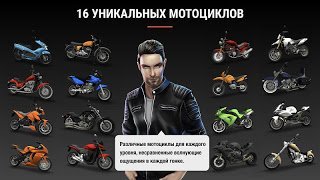 Если ты хочешь максимально ощущать поездку в игровом приложении, тогда у тебя появится отличная возможность выбрать любую камеру, с помощью которой ты сможешь увеличить, или уникализировать вид в игре. Ты будешь постоянные получать яркие впечатления от каждого из четырёх доступных видов камеры в игре. Если выбрать вид от первого лица, то ты сможешь почувствовать себя настоящим гонщиком, который уверенно следует к своей мечте. Ты всегда будешь получать большую конкуренцию среди всех существующих геймеров, которых обязательно необходимо обгонять. Большинство мотоциклов – это реальные модели, которые можно найти и в реальной жизни.Большая детализированная игровая вселенная