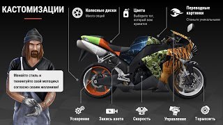 Если ты уже давно хотел поучаствовать в гонках на крутых мотоциклах – тогда у тебя появится такая возможность. Зачастую мало разработчиков выпускают поистине качественные гоночные игры на двухколёсном транспорте, но теперь ты сможешь с удовольствием поиграть в такую великолепную и интересную игру совершенно бесплатно. Ты сможешь получать от каждой гонки нереальную дозу адреналина в крови, который будет присутствовать у тебя всегда после того, как ты будешь запускать данный игровой проект. Разработчики подготовили именно для тебя множество уникальных моментов, а также интересности, которые подарят тебе великолепное настроение и незабываемые эмоции на долгое время. От чудесного детализированного графического оформления игры, а также от отличного музыкального сопровождения каждый игрок будет приятно удивлён, а также максимально удовлетворён. Также нельзя забывать об отличной физике движений мотоцикла, что способствует большой популярности этой игры среди современных геймеров. Конечно же, на данный момент множество разработчиков стараются выпускать только качественные игровые проекты, но не у каждого это получается довести до совершенства. Поэтому, только в данной игре ты сможешь наслаждаться чудесной незабываемой атмосферой, от которой ты будешь в восторге. Наверное, ты будешь ежедневно проводить много свободного времени за этой игрой, решая захватывающие игровые задания.