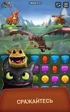 Dragons: Titan Uprising - представляю твоему вниманию логическую аркадную игру, сделанную по мотивам популярного мультфильма "Как приручить дракона". Главного героя игры будут ожидать невероятное приключения с большим количеством замечательных персонажей. Данная игра является головоломкой, в которой ты будешь коллекционировать драконов, а также принимать активное участие во множестве битв. Дабы собрать огромную коллекцию зверей, а также воспользоваться их силами в сражениях, тебе необходимо будет заниматься сортировкой драгоценных самоцветов в цепочки, собирая несколько рядов одинаковых объектов. Вместе с этим, персонажей будет ожидать невероятно интересные исследования различных невероятных островов, которые таят в себе удивительные количество секретов и тайн.