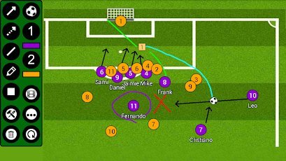 Футбол Тактический Доска – это удачная программа, созданная для тренеров футбольного направления. Приложение поможет объяснить спортсменам тактику на предстоящий матч. Игрок сможет наглядно продемонстрировать подопечным расположение под определенный поединок, а также действия для каждого из игроков. В распоряжении окажутся удобные инструменты. На площадку можно выставлять определенное количество игроков, давать им номера, определять направление движения со снарядом и без него во время защиты и атаки. Тактики можно сохранять в памяти гаджета, чтобы потом применять. Это хороший помощник, который всегда под рукой.