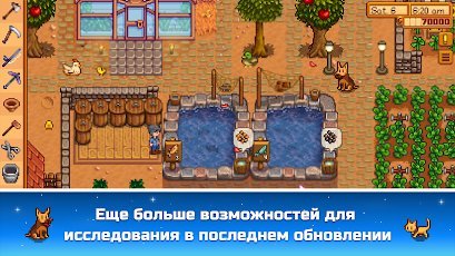 Stardew Valley – пиксельная игра, выполненная в виде симулятора фермы. Здесь игрок направится на территорию сельской местности. Там нужно помогать главному персонажу в восстановлении фермы. Это место досталось герою в наследство от дедушки. Хозяйство находится в плохом состоянии. поля поросли сорными травами, а строения разрушены. еще жизнь усложняет корпорация, которая всячески препятствует работе ферм. Потребуется восстанавливать строения, приводить угодья в порядок, а также выращивать культуры. Также необходимо разводить мелкий и крупный домашний скот. Игра подарит приятное времяпровождение, с которым не придется скучать.