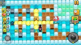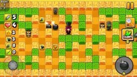 В свое время подобная игра появилась на компьютере, где и завоевала всеобщую популярность, в чем именно секрет подобной популярности? Секрет, наверное, кроется в том, что игровой процесс на момент появления игры, был уникальным просто до невозможности, впрочем, нужно добавить, что и сейчас он выглядит весьма оригинально. Здесь перед вами мобильная версия старой игры, она может похвастаться новыми и интересными локациями, но вместе с тем, ничего больше необычного здесь нет, сам игровой процесс стандартен до невозможного. Ваша основная задача, использовать солидный набор бомб, для того чтоб уничтожать разнообразных противников. Вашей целью будет поставить взрывчатку на пути у противника так, чтоб он подорвался сам, но вместе с тем ваш персонаж не пострадал. Последнее будет на самом деле нелегко, тем более что количество противников, по мере прохождения становиться все больше и они все опаснее. К тому же пространство для маневров здесь несколько ограничено, так что вам придется постоянно перемещаться так, чтоб не оказаться между противниками и взрывчаткой.