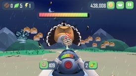 Миньон Шутер - мультипликационный аркадный тир с практичным управлением, где юзеру доведется встать на защиту прекрасного мира, подвергшегося инопланетному вторжению. Чтобы спасти свою планету от злых умыслов пришельцев, герою придется сесть за огромную пушку и начать стремительно истреблять представителей внеземных цивилизаций при помощи овощей и фруктов. Игроман получит в свое распоряжение полноценный арсенал снарядов, куда войдут кокосы, мандарины, бананы, ананасы, апельсины и т.д. Проверить свои навыки стрельбы можно будет в нескольких динамичных режимах на сотне занимательных этапов.