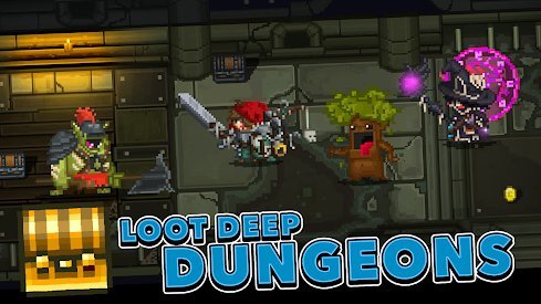 С этого момента ты с головой погрузишься в настоящее путешествие по великолепным землям, спускаясь в самые опасные и нереально страшные подземелья. В графическом плане игра разработана в пиксельном оформлении, поэтому особых проблем с запуском на слабых смартфонах с ней у тебя не возникнет. Начни собственное прохождение большого количества квестов и заданий, дабы побеждать во всех существующих игровых сражениях. На протяжении каждого уровня ты получишь нереальную дозу адреналина и радости из-за ретро-оформления, а также замечательного игрового процесса, который позволит тебе почувствовать себя в прошлом времени. В игре присутствует, как говорилось выше, полная оптимизация, поэтому ты с радостью сможешь запустить этот проект у себя на смартфоне. Для крафтинга у тебя появится возможность собрать достаточное количество разнообразных предметов, и может быть, с помощью только что сделанного предмета, твой процесс игры продвинется на несколько шагов вперёд. Используйся появившиеся возможности на максимум, дабы каждый раз укреплять силы главного героя игры, а также улучшая его характеристики в лучшую сторону. В любом случае, в скором времени ты будешь участвовать в кровопролитных битвах с боссами, а также ты будешь уничтожать монстров, мешающих тебе на пути.