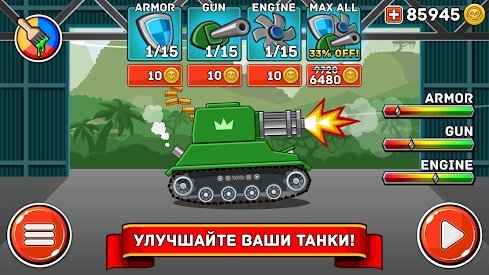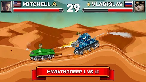 С этого момента ты сможешь прочувствовать совершенно другую атмосферу игрового проекта, и этот проект напомнит многим игрокам игрушку Хилл Климб. Ты будешь наслаждаться замечательным игровым процессом, и ты вряд ли сможешь оторваться от него за определённое количество времени. Пользуйся огромным количеством разнообразных танков, а также разнообразной техники, чтобы принимать активное участие в сражении с разными противниками. Ты удивишься, насколько интересно и профессионально создана физика автомобилей, которые двигаются по трассе. Выбирай свой собственный танк и езжай на поле сражения, чтобы сражаться с огромным количеством противников. Открывай огонь и добивайся победы, а когда у тебя будут перерывы, тогда необходимо заниматься прокачкой своей техники, которая станет намного производительнее работать. Увлекательность игрового процесса точно придётся тебе по вкусу, и ты сможешь без проблем получать удовольствие от каждой битвы. В игре находится большое количество замечательных моментов, которые точно тебе понравятся. Во время стрельбы из своего оружия, ты наглядно будешь видеть, как умирают твои противники.
