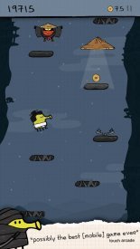 Doodle Jump - типичная аркадная игра для портативных девайсов, сумевшая открыть великолепный жанр Jumper. Мобильное приложение имеет единовременно достаточно простой и крайне сложный геймплей. Игроман примерит на себя роль странного желтого существа, вынужденного безостановочно прыгать вверх по разнообразным платформам. Юзеру следует максимально точно задавать направление движения своего маленького подопечного, дабы тот не упал. Попутно он в обязательном порядке столкнется с адским вихрем всевозможных преград в виде враждебных представителей внеземных цивилизаций и иных чужеродных объектов, их необходимо будет остерегаться.