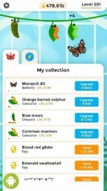 Butterfly Idle - весьма занятный симулятор разведения экзотических бабочек с симпатичной графикой, содержащий достаточно простенький игровой процесс. Юзеру будет предложено заняться сбором внушительной коллекции этих маленьких чудесных крылатых насекомых с целью получения цветочной пыльцы. Каждая из бабочек начнет приносить определенное число пыльцы, которая поможет с заработком монет. Заработанная прибыль позволит покупать всевозможные улучшения. За исключением всего вышенаписанного, игроману разрешается производить объединение разнообразных видов бабочек, чтобы на выходе получать новые разновидности.