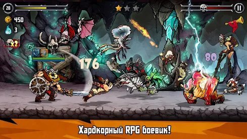 Вам предстоит собрать команду отважных воинов, которые во главе с могущественным викингом будут сражаться толпами орков, гоблинов, скелетов, зомби и прочих существ. Вас ждут невероятно эпичные матчи, элементы нескольких игровых направлений, а также красочная рисованная графика с шикарными анимационными эффектами.