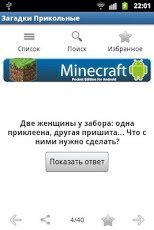 Приложение получило очень простое оформление, но благодаря этому работает оно стабильно и максимально быстро, ничего лишнего в нём нет. Понравившиеся загадки вы всегда сможете добавить в список избранного и после загадывать их своим друзьям и знакомым. В настройках вы сможете поменять тему, выбрав светлую или темную, а также увеличить/уменьшить текущий шрифт текста.
