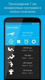 Just 6 Weeks – очень простое и функциональное приложение для тех людей, которые недовольны своей физической формой. И хотели бы исправить подобную неприятность, если вы считаете, что это касается вас, значить смело скачивайте приложение, и наслаждайтесь его функционалом. Можете даже не сомневаться, в любом случае, игра не должна будет вас разочаровать, или оставить недовольными. Приложение даст откровенно актуальные советы, касательно самых разнообразных событий, к примеру, вы точно узнаете, когда пришла пора отжиматься, и выполнять прочие физические упражнения. Приложение грамотно было переведено на русский язык, благодаря чему, вы сможете без каких-то особенных проблем, понимать, что именно хочет от вас приложение, и оперативно выполнять все поставленные задачи.