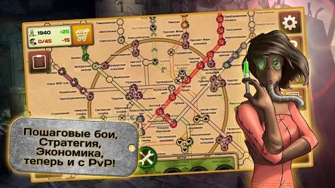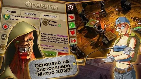 Отдельно стоит отметить, что Метро 2033, может похвастаться откровенно интересными пошаговыми боями, в которых вам и придётся принимать участие. Иметься здесь и огромнейшее количество разнообразных интересных зданий и сооружений, от которых достаточно большой толк, так что игнорировать их в любом случае не стоит. Радуют и разнообразные фракции, имеющиеся в игре, каждая из них обладает своими собственными увлекательными способностями. Кроме того, иметься здесь немало разнообразных бойцов, в том числе и весьма занимательные наёмники, которые могут вам пригодиться. Кроме того, по мере прохождения, вас будет ожидать просто колоссальный набор самых разнообразных заданий, которые будут привносить в игровой процесс нечто новое, а кроме того, выполнение подобных задание, принесёт вам разнообразные бонусы.
