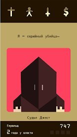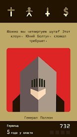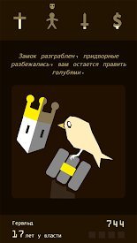 Интересная приключенческая карточная стратегическая игра, где пользователям придется выступить в роли главы королевства. Все началось с убийства существующего короля, после смерти правителя вы заняли его трон. Теперь ваша жизнь превратилась в самую настоящую адскую преисподнюю, поскольку вам как новому диктатору необходимо держать равновесие между несколькими сторонами, и ежели какая-то из них упадет до нуля, вы окажитесь в проигрыше. Все что игрокам, которым довелось установить Reigns, потребуется - это давать правильные ответы на замысловатые вопросы, постоянно пролистывая игровые карты.