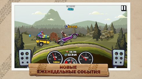 In the game you will find a large set of wheelbarrows that you can buy, or already improve existing ones, while the improvement system is quite developed, so you can change your transport literally indefinitely. It is not difficult to guess from the name, here before you is the second part the same game in which on one side there remained attractive atmosphere of the first part, as its other advantages, however, have added a lot of advantages. There are both new cars and new levels, about several additional modes, you can not mention at all. All of the above is enough to Hill Climb Racing 2. But if you just had a little, it's still not terrible, because there are still a lot of advantages here. For example, in addition to the usual off-road vehicles, you can see a number of more interesting vehicles, for example, there is a tank, a police car and even a sled. In addition, each location is made in its own unique style and has its own unique features. On the road to move forward, you need to regularly replenish fuel reserves, which will be very limited.