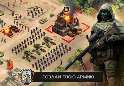 Soldiers Inc: Mobile Warfare - is an excellent online strategy game in which you will take part in a military conflict. But before you send your troops into battle, you will have to hire and train the combat units themselves and provide them with everything they need. The game has three main resources: food, ammunition, and fuel. All of them will be required to build and develop your base, as well as create your own army, which will then be sent to attack the enemy. Here you can fight both against the computer and against real players. The purpose of such attacks is to quickly extract the necessary resources. The game is very beautifully stylized, has a nice appearance and convenient management.