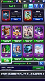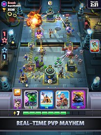 Chaos Battle League is an excellent clone of the popular strategy game in the genre of action Clash Royale. Here you also have to take part in a 1- on-1 battle with the enemy and try to destroy his base before he does it. To do this, you will use a variety of warriors who will come across in chests in the form of cards. Before each battle, you will need to collect decks and then use them in battle. Each character requires a certain amount of energy to appear. It is constantly replenished, and its maximum value is equal to 10. To pump a particular unit, you need to knock out a certain number of cards. With each level of leveling, you will need more and more cards for the character.