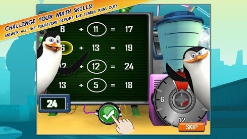 Madagascar Math Ops - an arcade game based on the famous cartoon of the same name, in which the main characters (Alex, Marty, Melman and Gloria) are kidnapped under the guise of an invitation to a party, and their faithful penguin brothers will use their mathematically calculated tricks to save them in every possible way. The user needs the penguins with jet packs to get into the cage with your friends so that they fell and opened. And to replenish the stock and the correct concentration of soda in the satchels just need the mathematical abilities of the player, in his hands the fate of a good-natured lion, a merry Zebra, a melancholy giraffe and a charming Hippo.