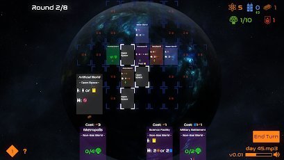 Solar Settlers - is a card game made in the strategic genre. The representation of the product occur in the world of the future. According to the idea, the sun was on the verge of destruction. In this regard, people have to explore space. it is necessary in whatever was to find humanity a new home. The quest sent many shuttles. One of them will be managed by the user. The player's task will be the exploration of space. You will also need to organize life on a space ship. The décor is pleasant. It should be noted simple controls through which to interact with the game will be easy.