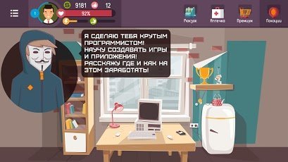 Hacker - tap smartphone tycoon, life simulatoris an exciting game product where the user will have the opportunity to master the profession of a programmer. This will begin the path to becoming a successful hacker. The gamer will be able to get acquainted with the characters that will be an indispensable tool in programming. To reach financial and career heights, you will need to develop a large number of applications and programs. You can also purchase different equipment, make projects, and control your work office. You also need to remember about taxes, so that the special service is not interested in the user's work.