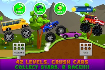 Monster Trucks Game for Kids 2 is a great racing game where the user can take control of jeeps. Vehicles have large wheels. They will allow you to overcome hilly tracks. The game has a bright graphic design, as well as fun music. The product will be interesting for the age group from 2 to 8 years. There is a non-standard gameplay that has some differences. Trucks will not roll over during the races. Opponents who have gone ahead will slow down so that the player has a chance to overtake them. All this will bring positive emotions and impressions to the child.
