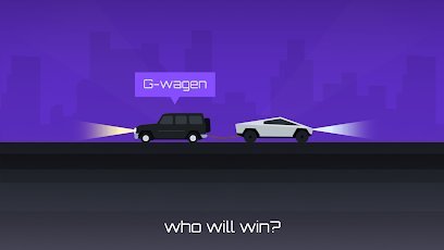Cybertruck is an entertaining arcade game where the user can drive a rather unusual vehicle. This is an electric SUV, implemented in a futuristic design. The gameplay here is to pull simple cars by using a cable. To win, you need to tap the screen. At this time, the pickup truck will pull the opponent. In addition to participating in competitions, you can improve the battery, engine, and tires. All this will allow to increase the efficiency of the ward transport. The control system is made as simple and clear as possible, so you don't need to spend time learning it.
